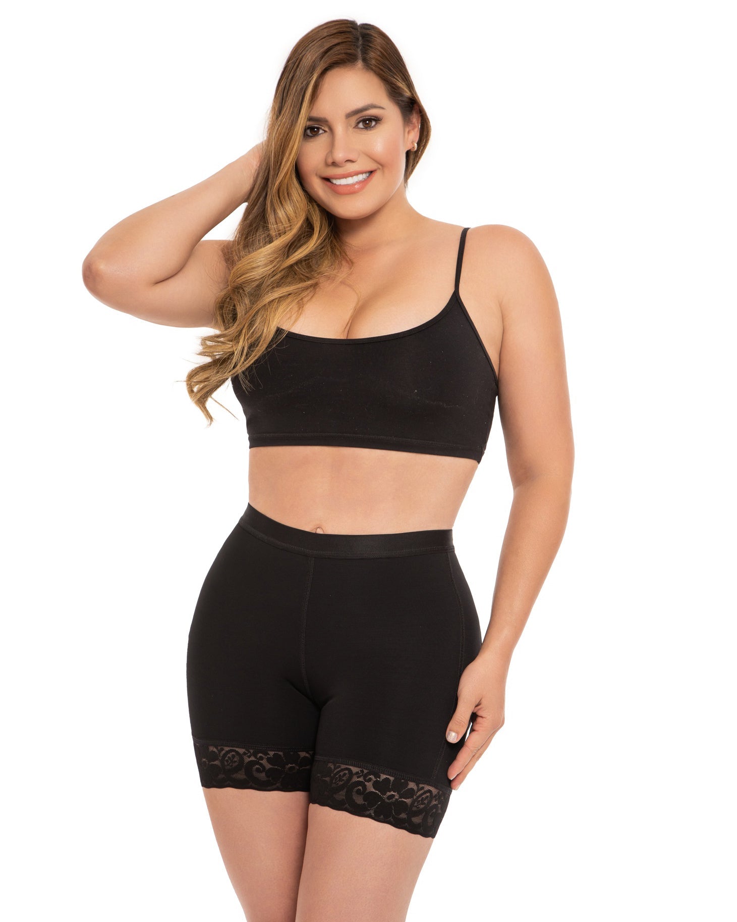 El material suave de alta calidad le brinda la forma perfecta de glúteos elevados y un control ligero sobre los muslos.