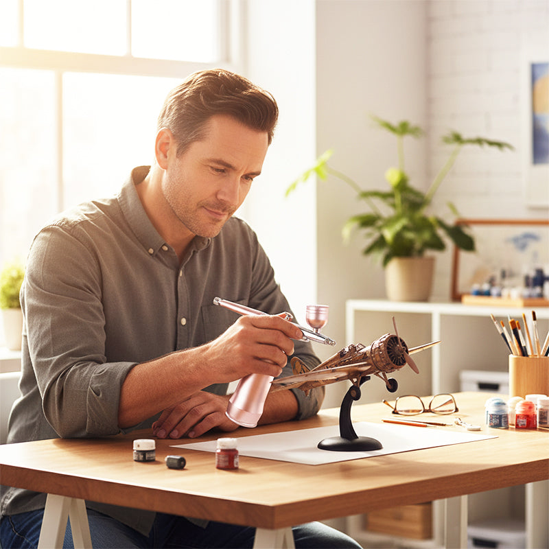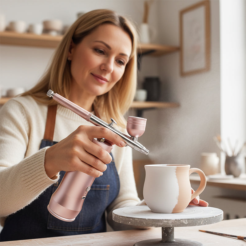 DISEÑO INALÁMBRICO Y PORTÁTIL - La batería recargable integrada y el cuerpo compacto te liberan de cables enredados y compresores voluminosos. Esto ofrece una libertad inigualable para crear en cualquier lugar, desde tu estudio hasta trabajos en exteriores, sin estar atado a un enchufe.