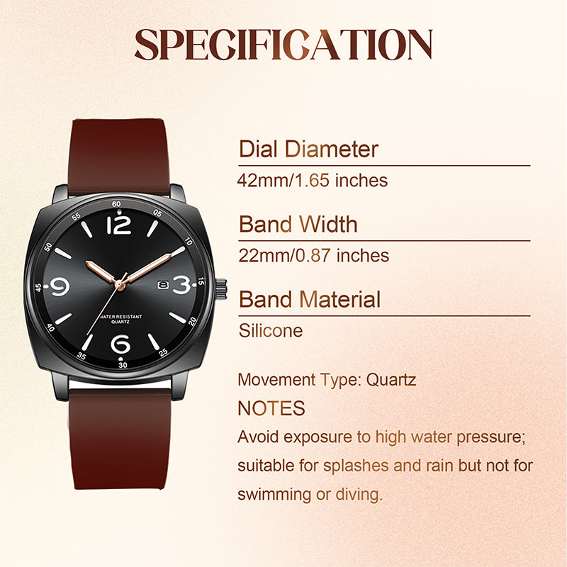 CÓMODO Y ELEGANTE: diseñado para ajustarse cómodamente a tu muñeca, este reloj combina sin esfuerzo estilo y funcionalidad. Su diseño limpio y discreto atrae a quienes aprecian la calidad fiable y el gusto refinado. Una elección sutil pero sofisticada que refleja tu sentido de la elegancia sin decir una palabra.