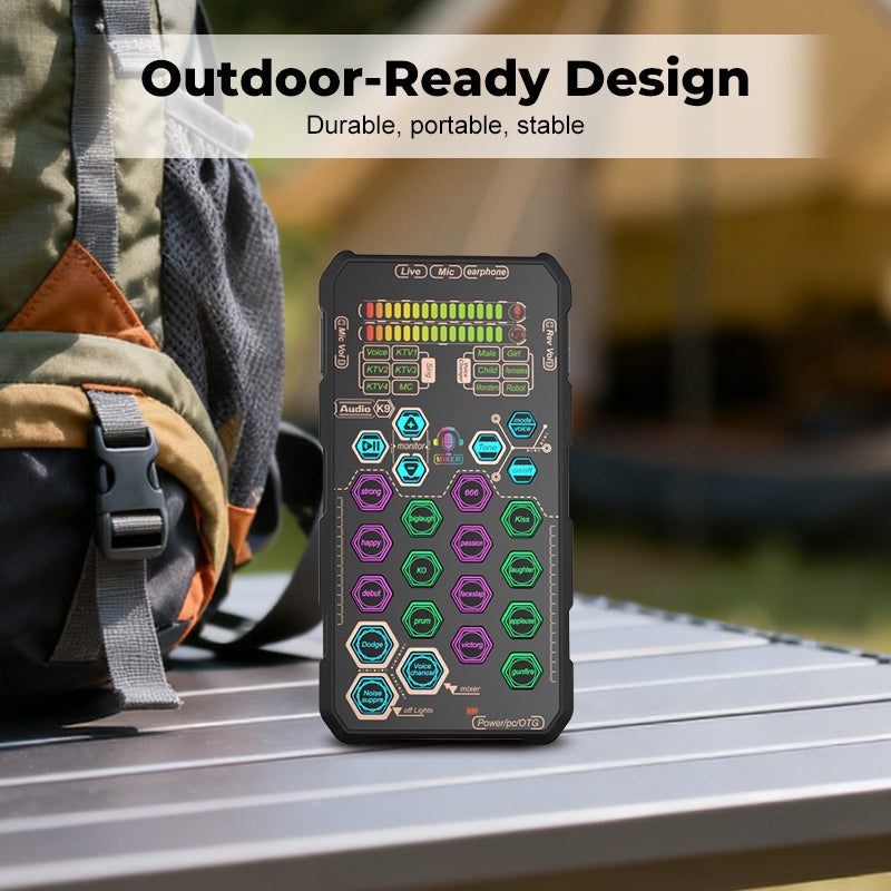 ✨【1° Más Vendido】🎤 Draagbare Handheld Live Sound Card (Stemvervormer): Multifunctionele Effecten + Ruisonderdrukking – Stream vanaf Overal!