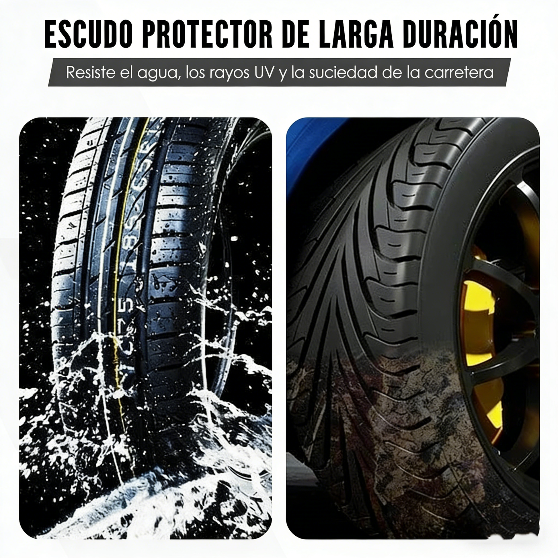 LIGADURA DE RESINA DE LARGA DURACIÓN - Disfrute de una protección duradera. Las moléculas de resina de alta penetración se adhieren profundamente a los microporos del neumático, creando un escudo resistente que no se desprende ni se elimina fácilmente con el lavado, y que dura mucho más que los revestimientos oleosos.