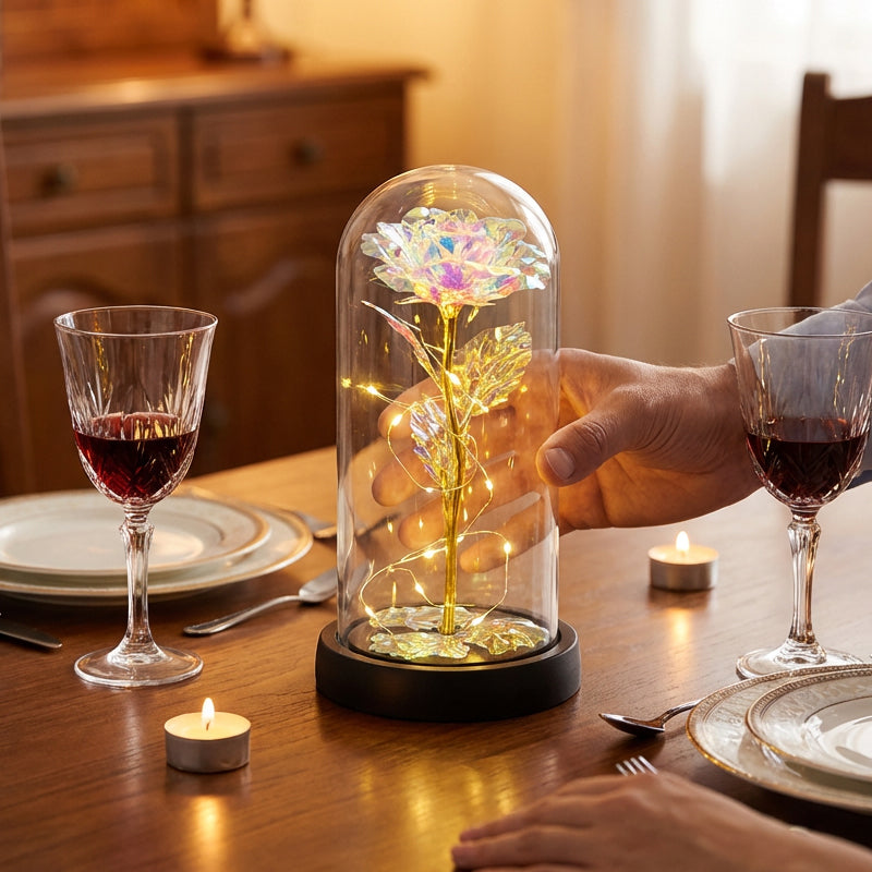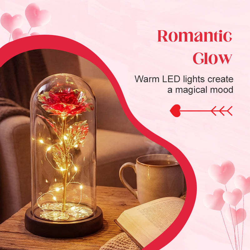 Luminous Forever Rose with Glass Cover & Fairy Lights