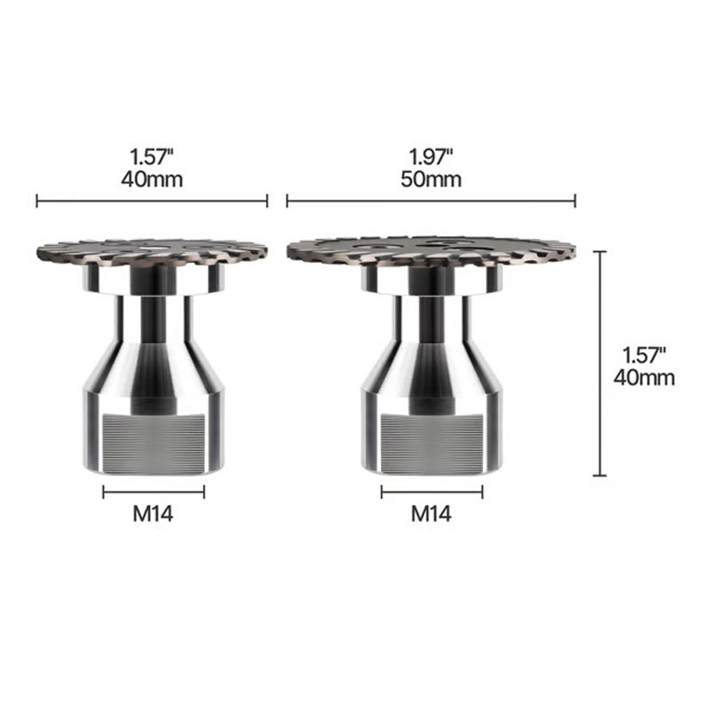 COMPATIBILIDAD M14 COMPACTA: Con un diámetro compacto de 50 mm y una conexión roscada M14 estándar, esta minifresa se instala fácilmente y es compatible con la mayoría de las herramientas manuales. Gracias a su reducido peso, permite realizar cortes flexibles y precisos en espacios reducidos.