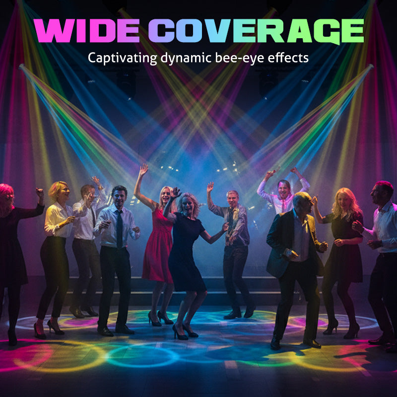 LENTE INTEGRADA BEE-EYE - La lente central Bee-Eye produce un fascinante efecto de lavado con múltiples haces nítidos. Añade profundidad y complejidad a tu configuración de iluminación, proporcionando efectos visuales de calidad profesional para escenarios, discotecas y fiestas.