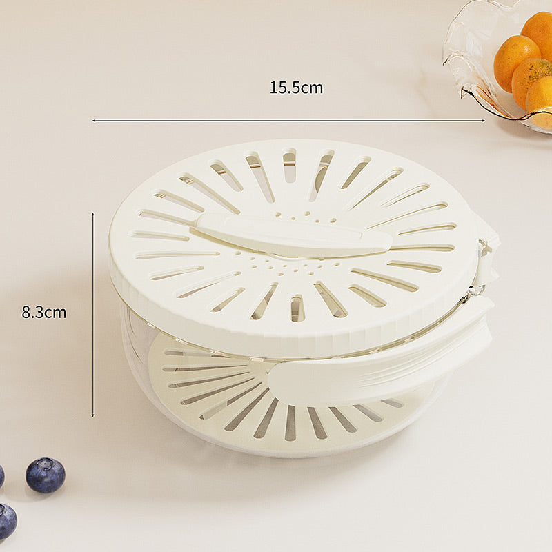 BANDEJA DE DRENAJE: Equipada con una bandeja de drenaje para mantener las frutas y verduras secas y evitar la acumulación de agua. Sus productos se mantienen frescos, secos y crujientes sin empaparse de agua.