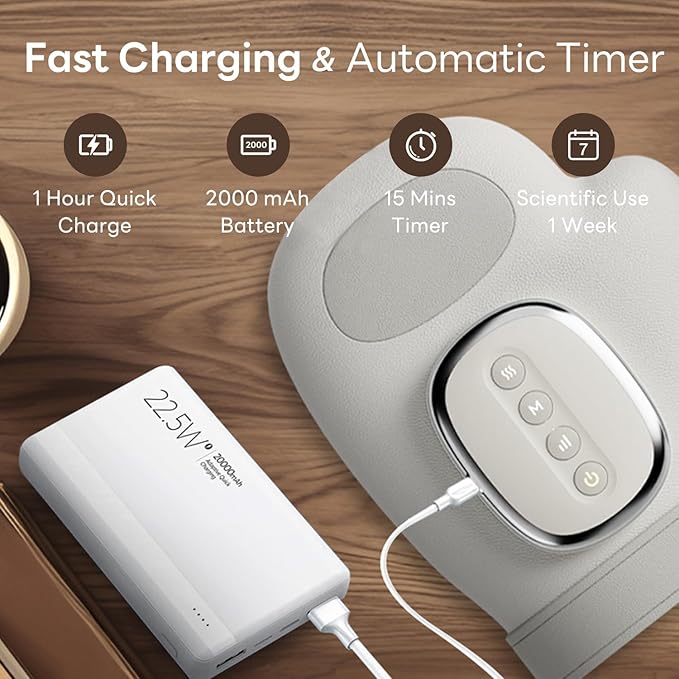 PORTABILIDAD INALÁMBRICA: masaje en cualquier lugar y en cualquier momento. Equipado con una batería recargable de 2000 mAh y carga rápida tipo C, este masajeador de manos inalámbrico ofrece horas de uso portátil, perfecto para el hogar, la oficina o los viajes.