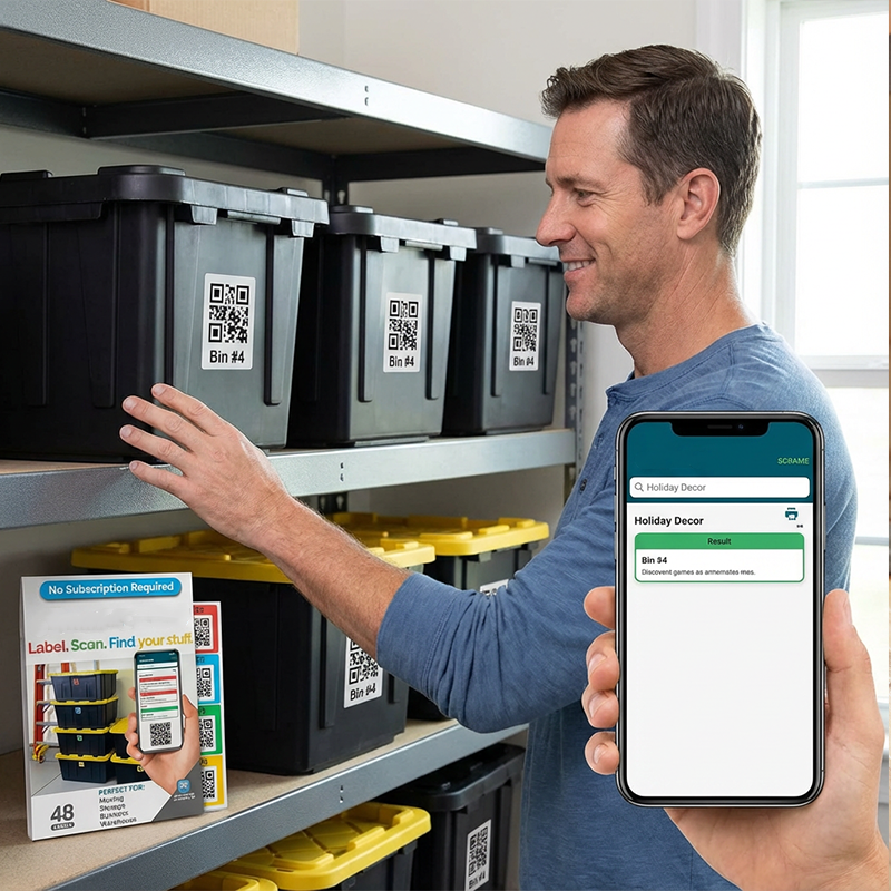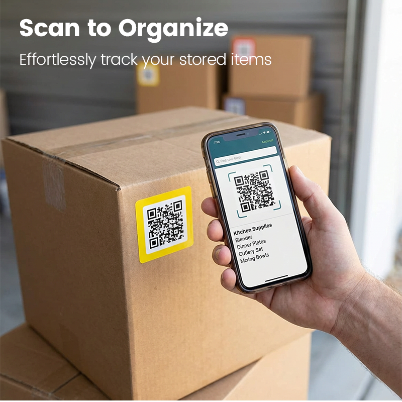 ORGANIZACIÓN INTELIGENTE: utiliza códigos QR codificados por colores y una aplicación específica para clasificar y localizar fácilmente los artículos que guardas en cajas de almacenamiento. Este sistema elimina las conjeturas, ya que permite saber fácilmente qué hay dentro sin tener que abrir cada contenedor.