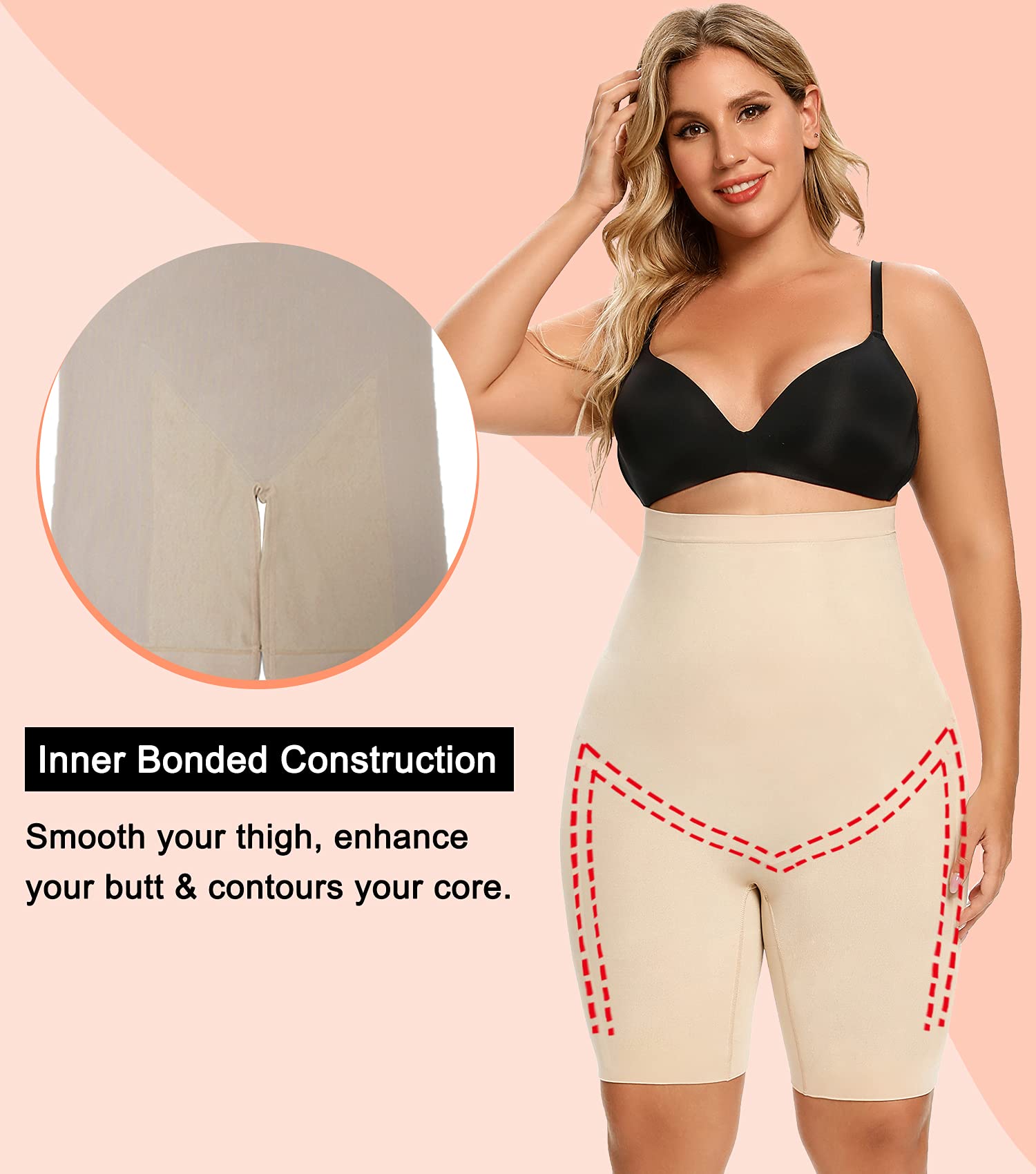 TELA CÓMODA, MODELADO DE 360 GRADOS: Esta tela elástica y reductora de muslos de control firme te brinda un modelado de 360 grados sin sacrificar la comodidad o la facilidad de movimiento, ya sea que estés haciendo mandados, en tu escritorio o en la pista de baile.