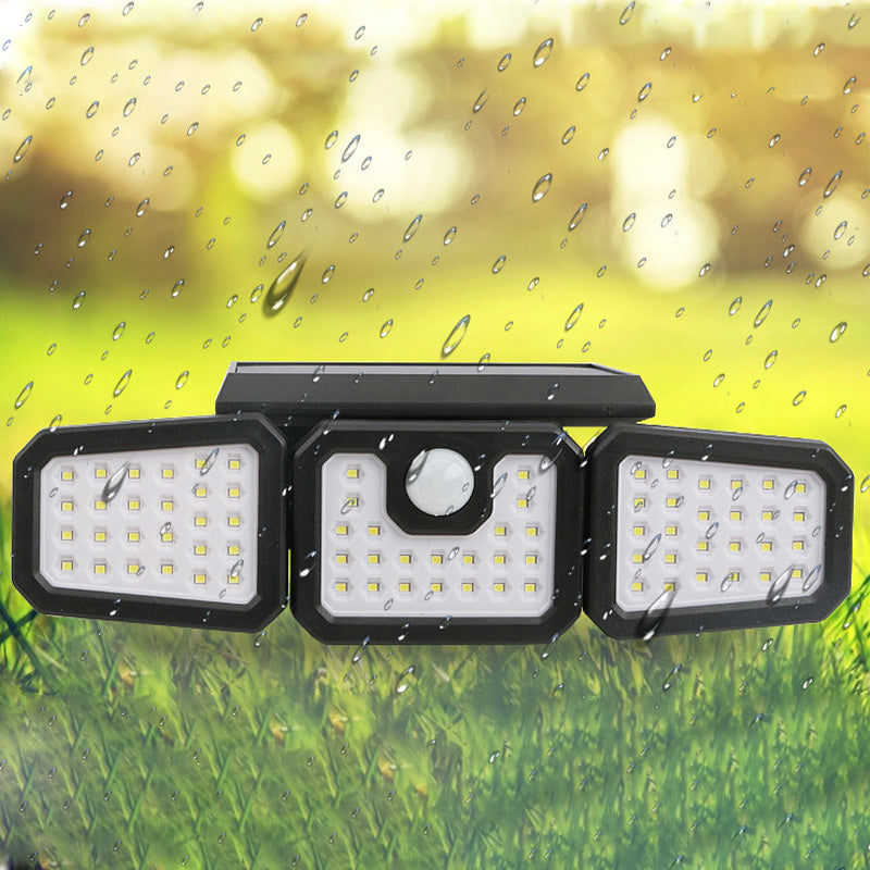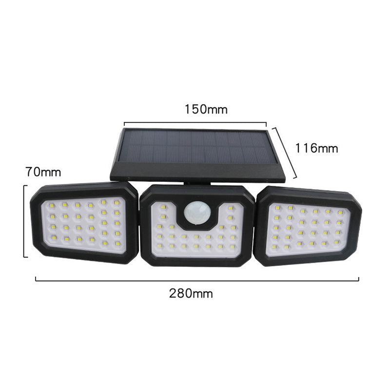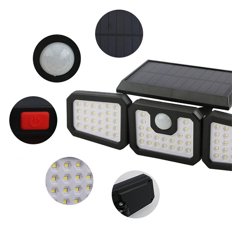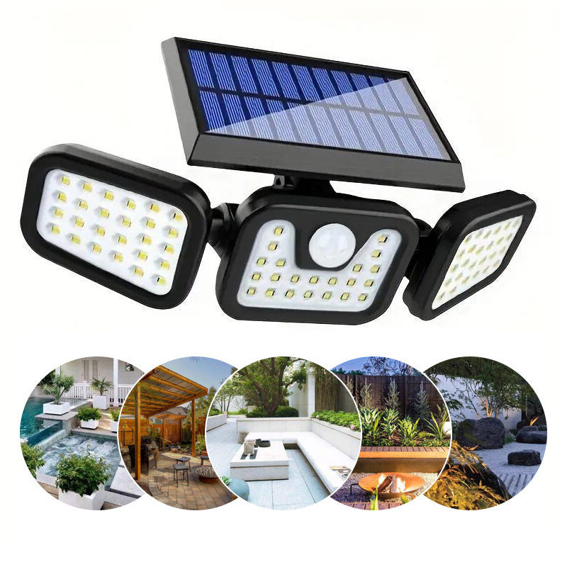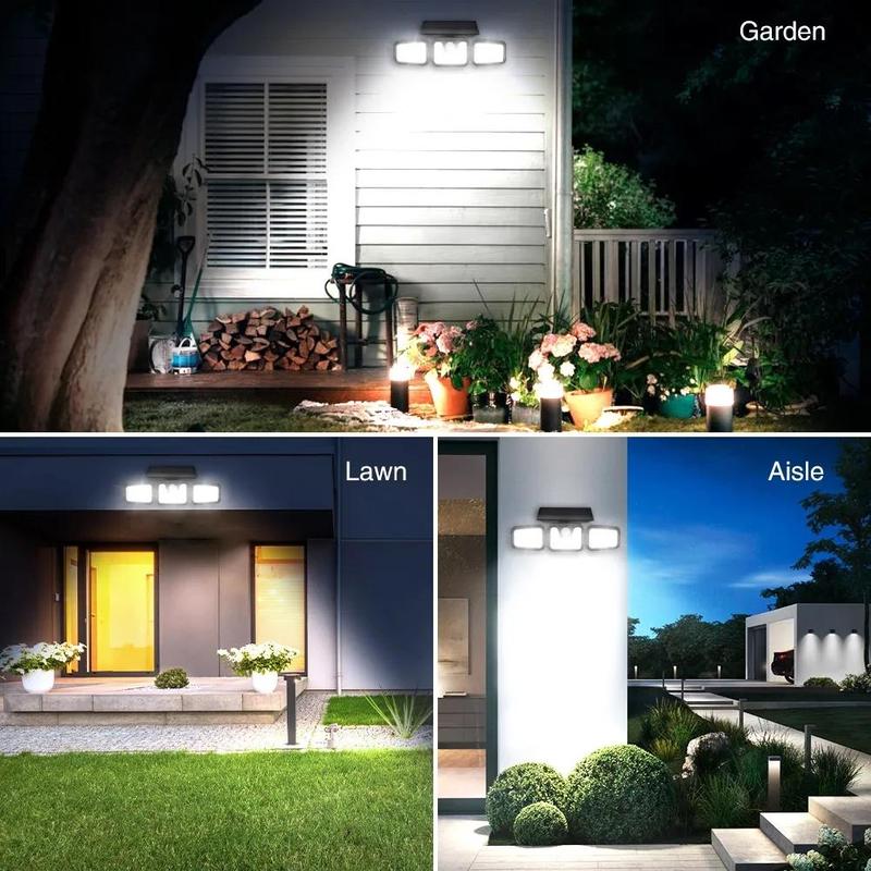 Lámpara solar de pared con 3 cabezales y sensor de iluminación