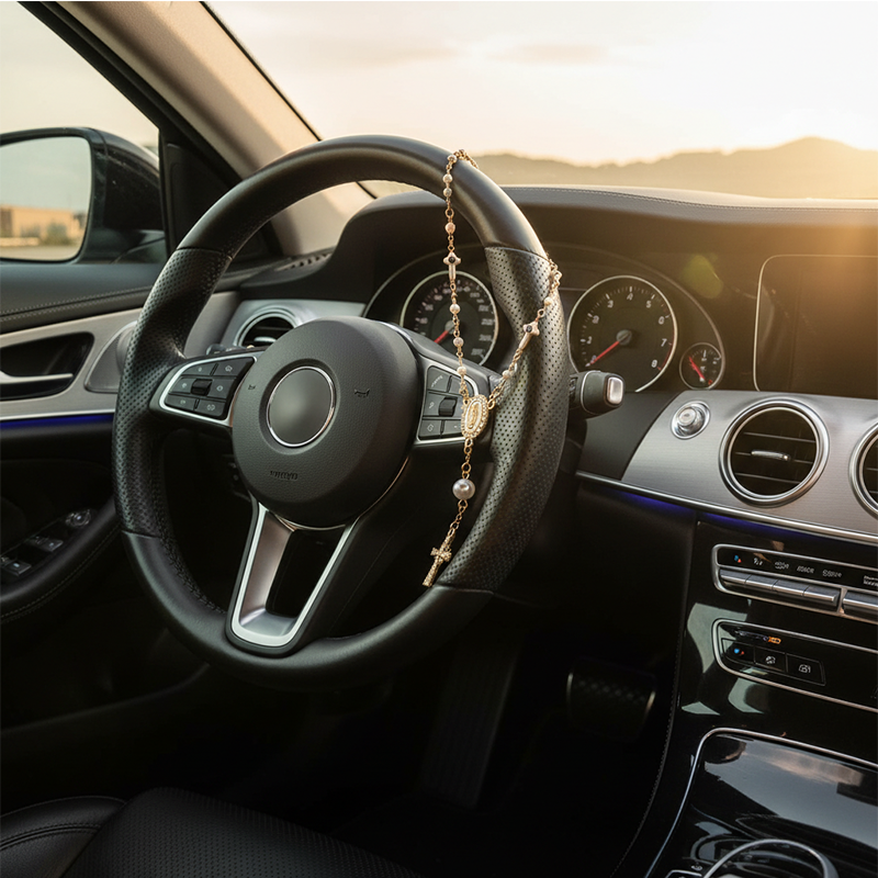 Unique Retro Steering Wheel Rosary Pendant